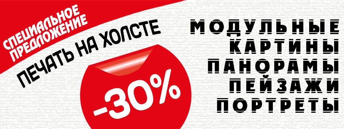 Скидка 30% на печать на холсте: